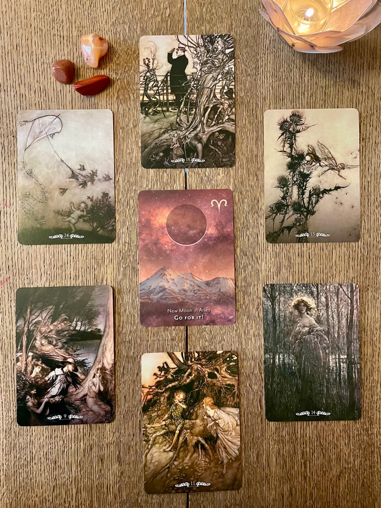 Dette er som sagt ikke en nymåne som egner seg for å starte opp nye prosjekter eller løpe av gårde med værens ild energi i ryggen. Ro ned og sitt med prosjektene dine, gi ting den tiden det trenger. Bruk beskjeden fra nymfen klokt. Lytt til ditt indre kompass. Ta vare på ditt indre harmoniske rom. Ha en magisk nymåne!